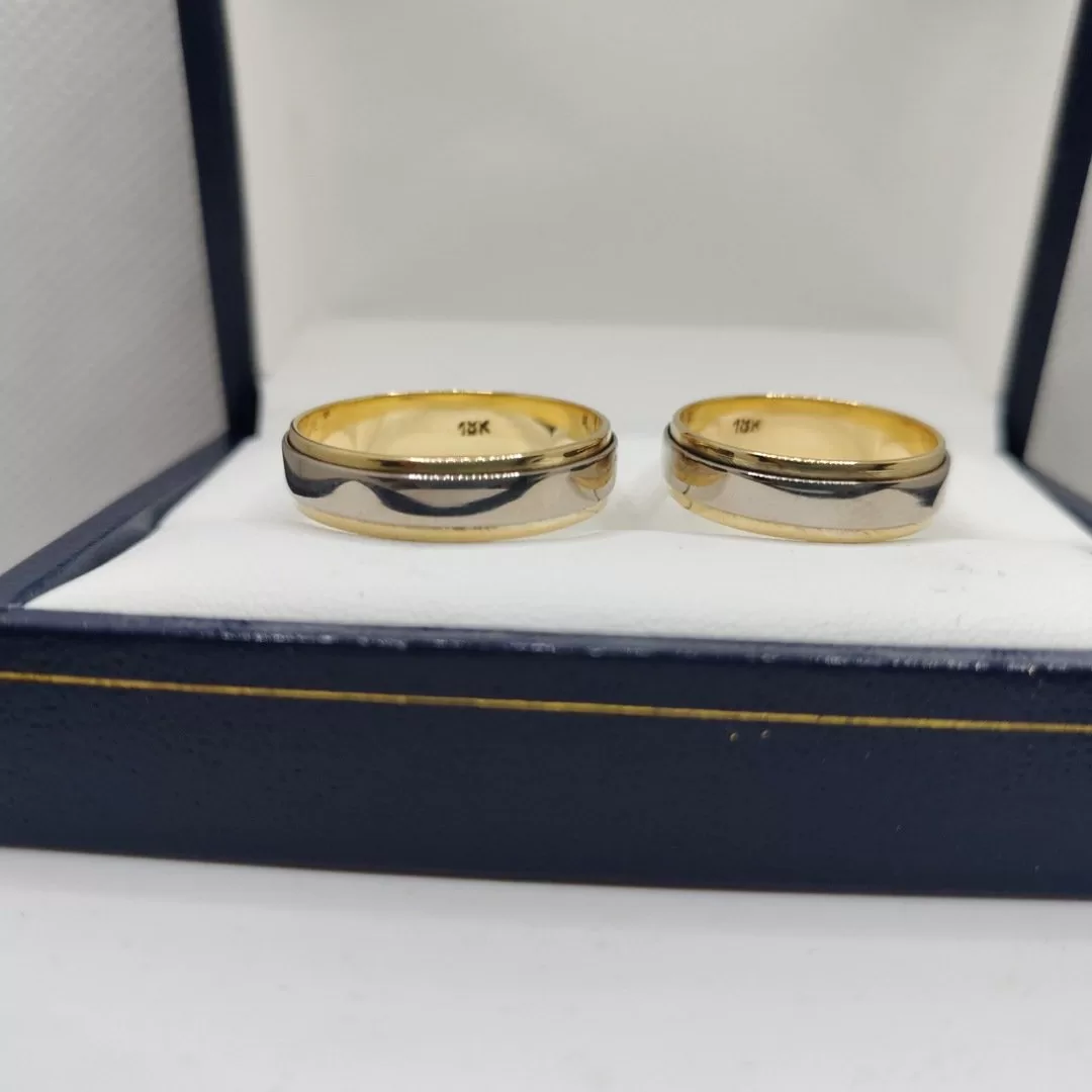 Par de alianzas en oro 18K, bicolor, 6mm de ancho