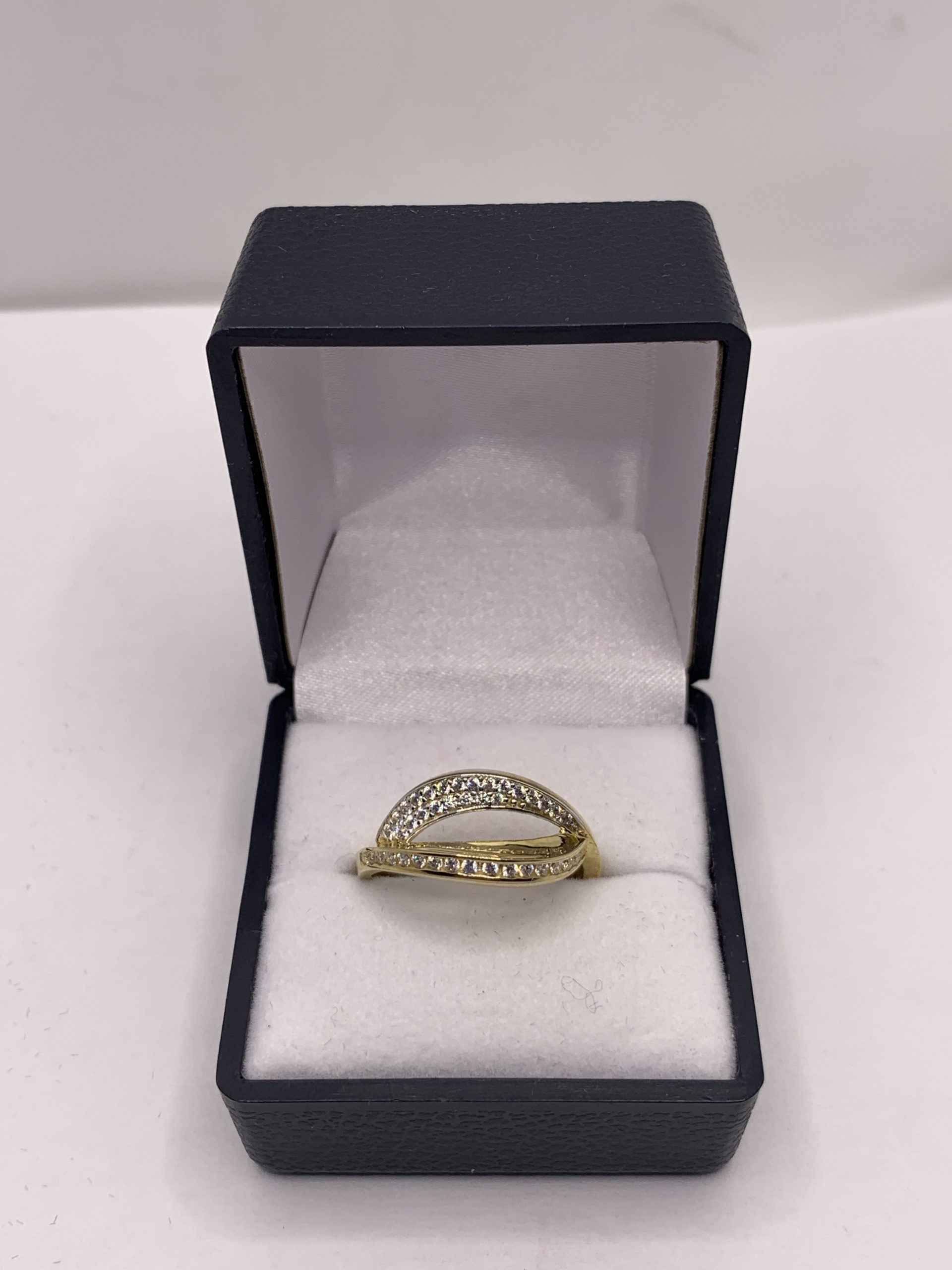 Hermoso anillo oro 10K italiano talle 16, circonias